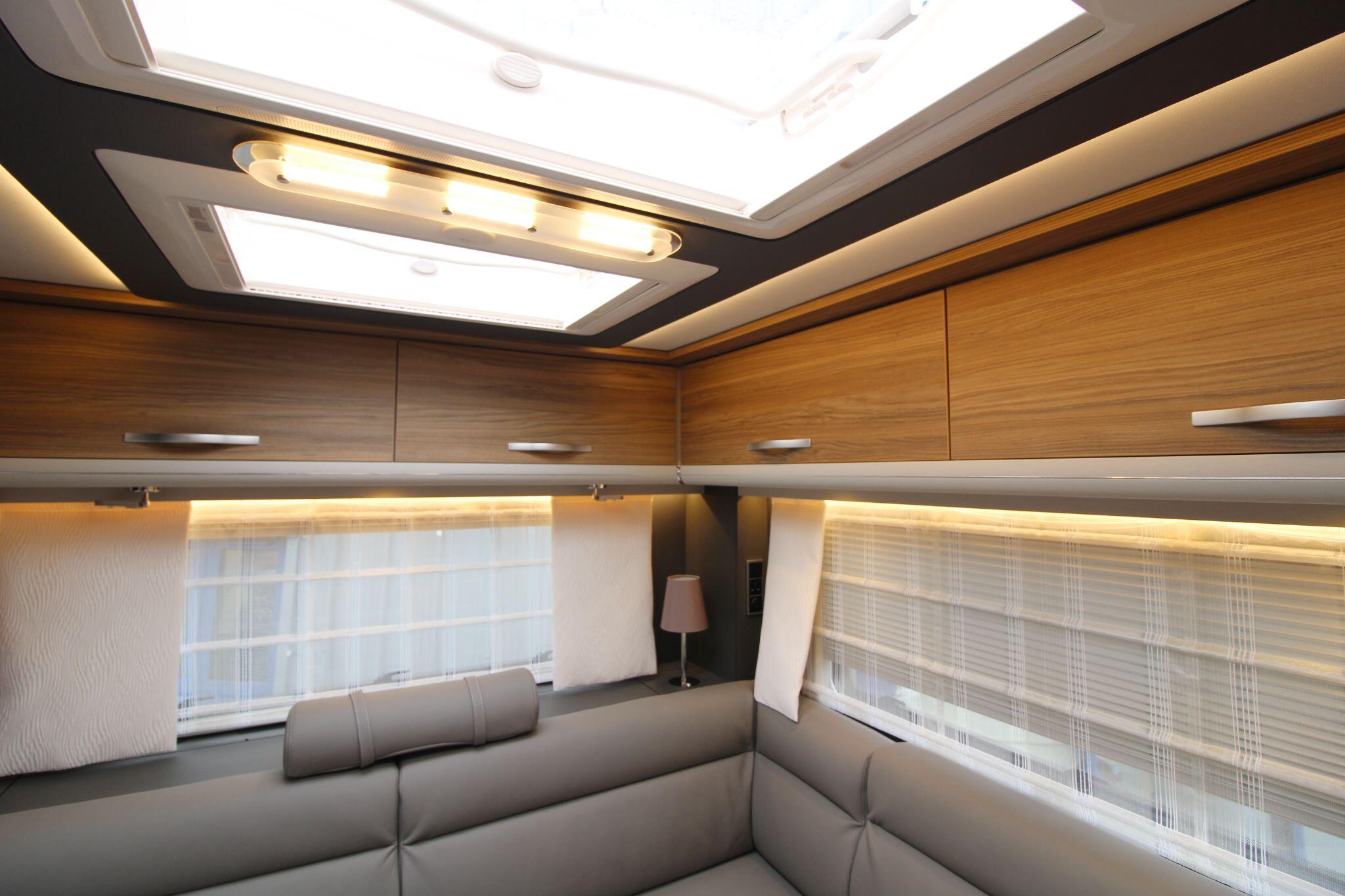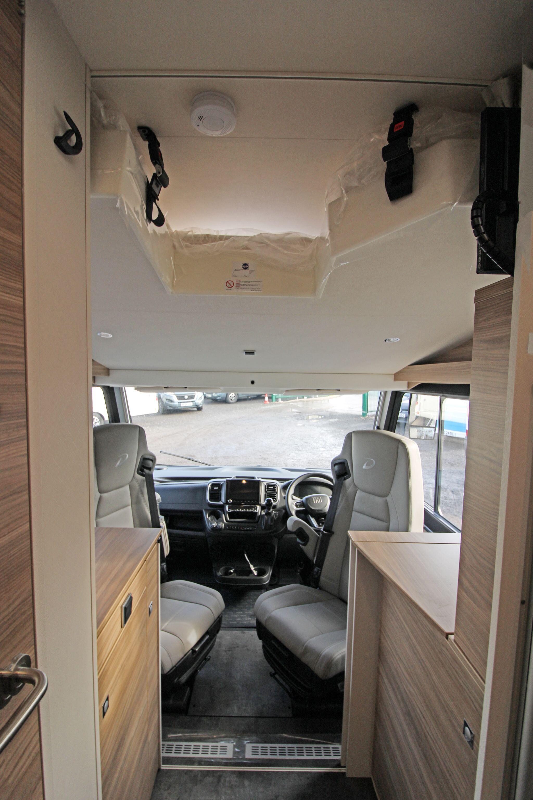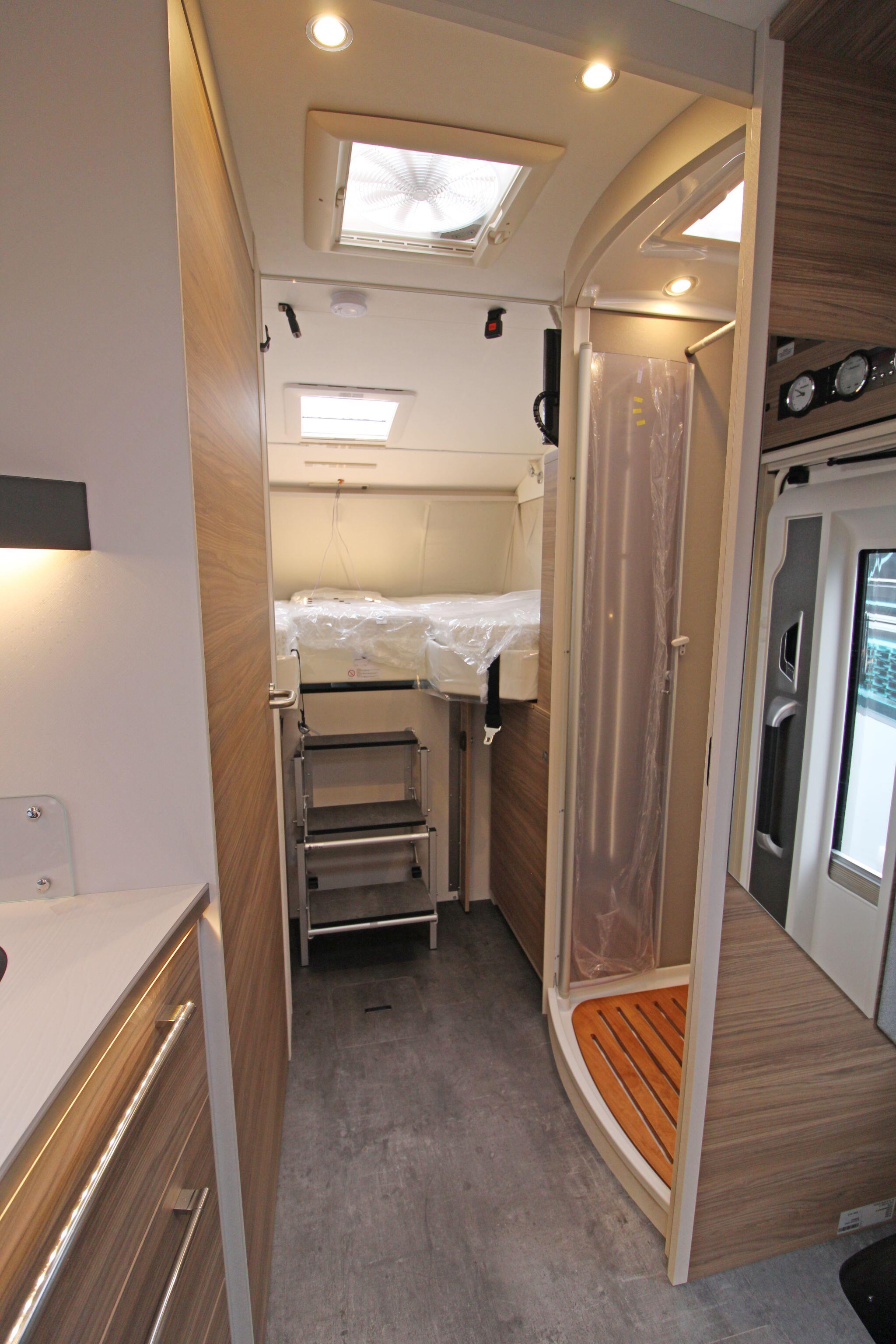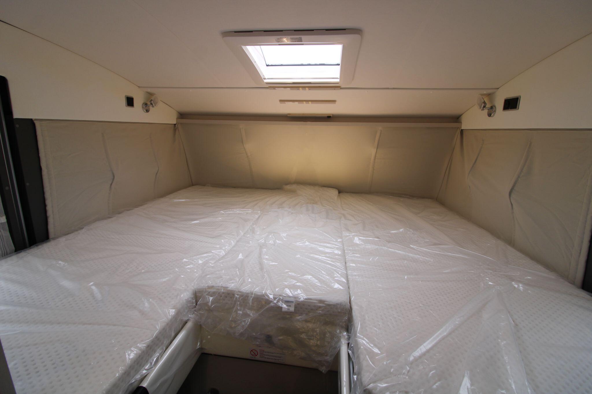 Sleeping up to four people, this model includes comfortable rear beds and the option for additional berths, making it versatile for overnight stays. The lounge area also cleverly adapts to support sleeping arrangements when needed. Large windows and ambient LED lighting create a bright, welcoming environment that feels more like home than a vehicle.