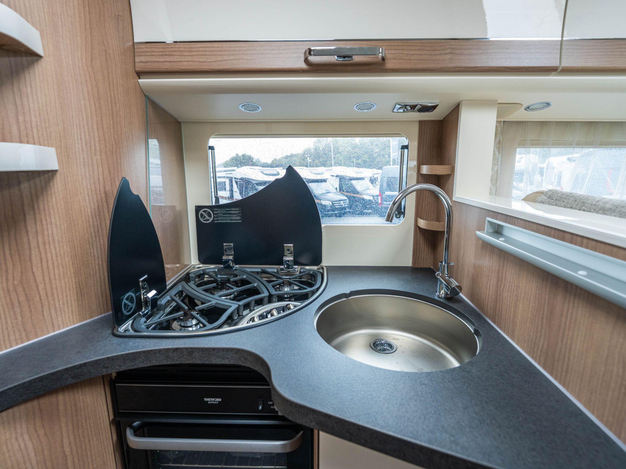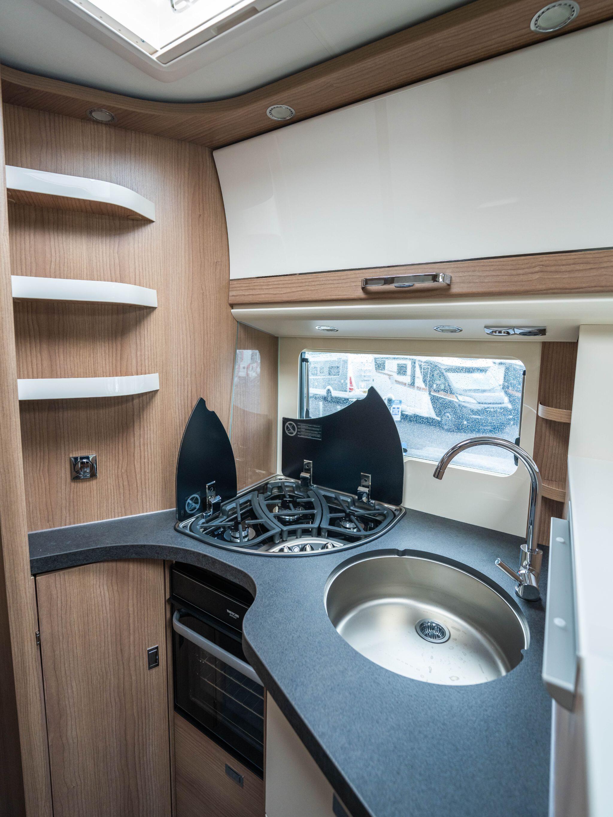 The Malibu T 500 RB-QB has an L-shaped lounge seating area with pull-out shoe cabinet and wide, swivel-up side bench seat, comfort corner kitchen and comfort luxury bathroom with fully separable dressing room so you can enjoy the best holidays. In addition to this, there is the cosy queen-size bed with large sleeping area.