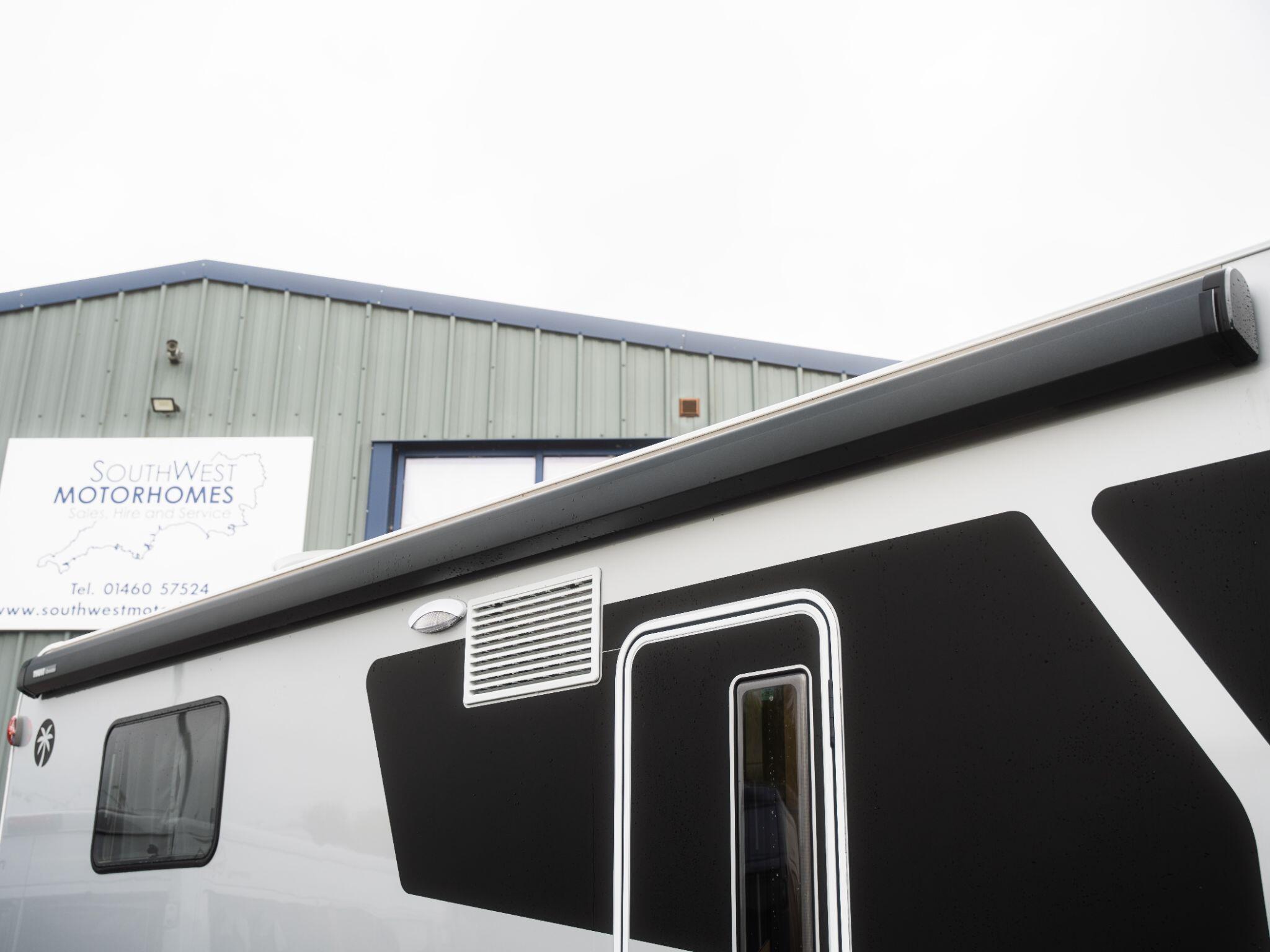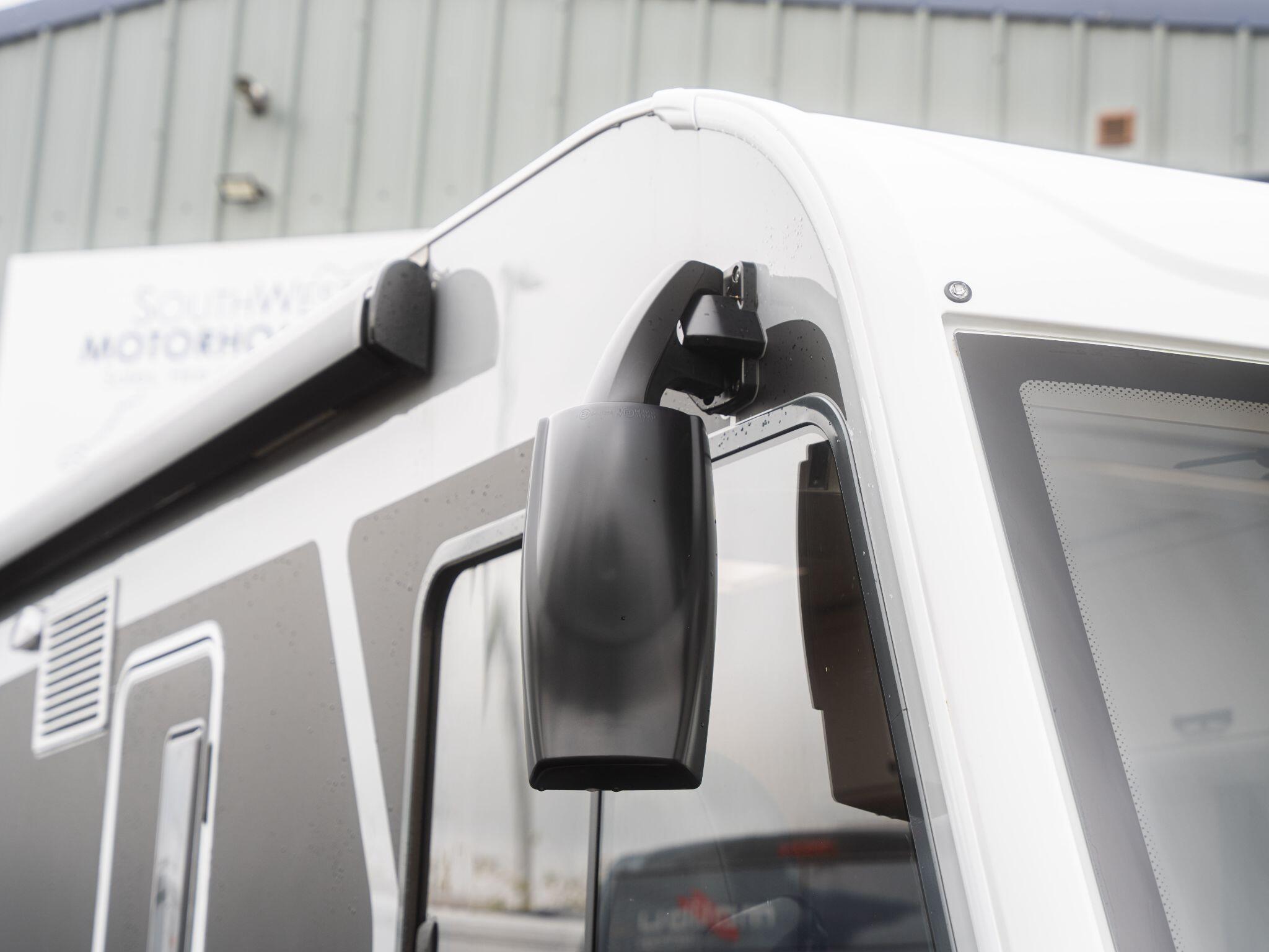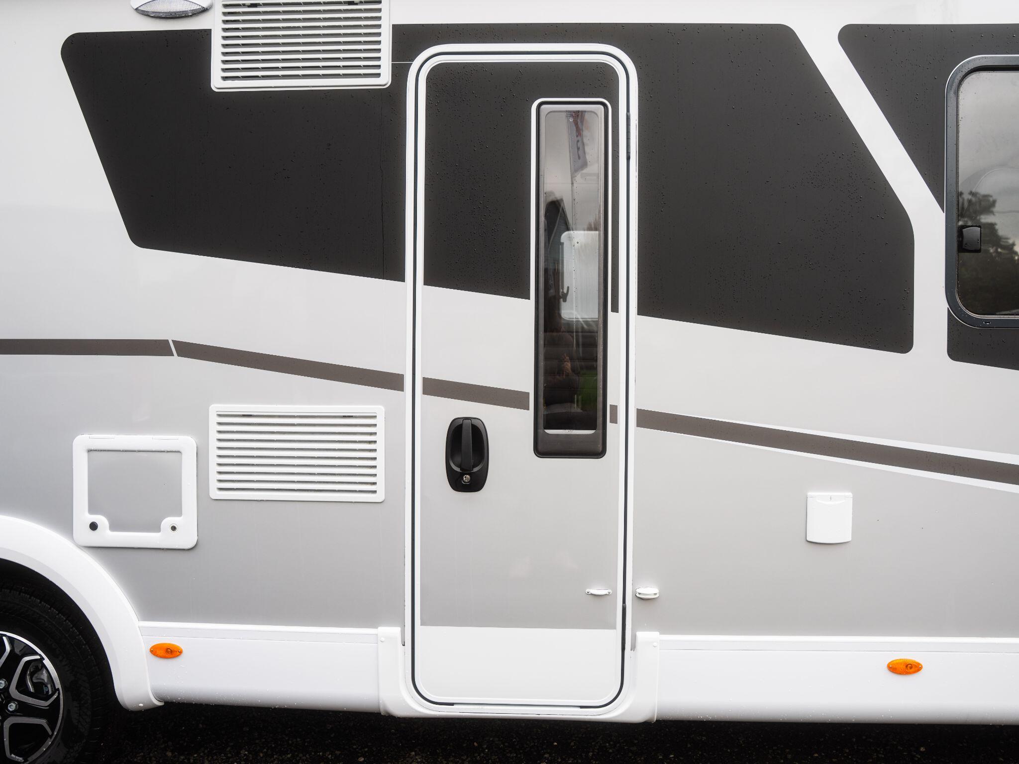 Adventure Edition styling gives this motorhome a striking appearance: smooth silver sidewalls, “Adventure” decals, framed windows and a high-level, full-LED rear light cluster bring a premium but dynamic look.